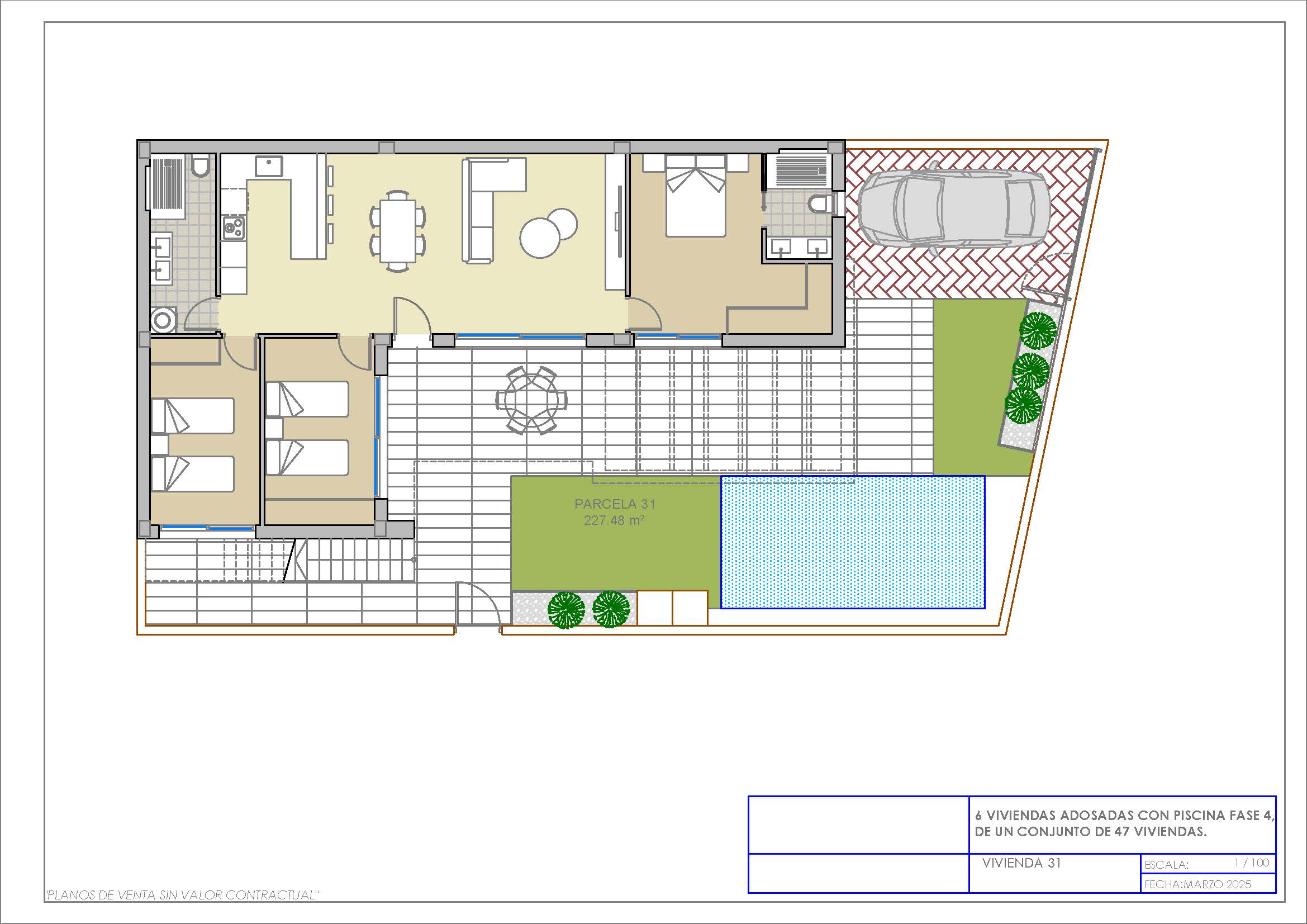 Het interieurontwerp van deze villa’s in La Herrada, Los Montesinos, combineert functionaliteit en moderne stijl om een gastvrije en comfortabele sfeer te creëren. De villa’s zijn slim verdeeld over twee verdiepingen en bieden een open keuken, woon- en eetruimte op de begane grond, samen met een grote slaapkamer compleet met kleedkamer en badkamer. Boven zijn er nog twee slaapkamers, een badkamer en een ruim terras. De interieurs zijn ontworpen met hoogwaardige afwerkingen en functies zoals inbouwkasten en pre-installatie voor airconditioning. Deze binnenruimtes zijn ontworpen om het comfort en de functionaliteit te maximaliseren, waardoor een perfect huis ontstaat waar het hele gezin van kan genieten.