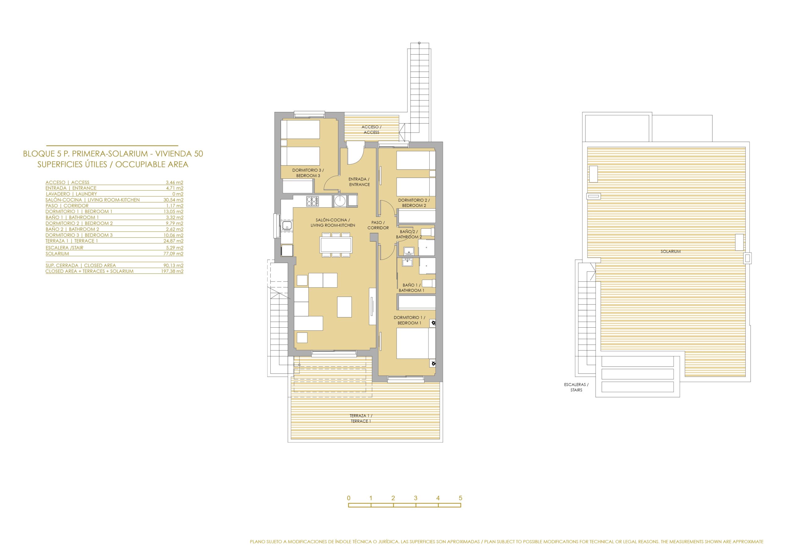 De buitenruimtes van deze woningen zijn ontworpen om optimaal te genieten van het mediterrane klimaat. Elke woning heeft een terras, ideaal om buiten te ontspannen of te genieten van maaltijden in de open lucht. Bovendien bevatten sommige typologieën een solarium, wat een extra ruimte biedt om te zonnebaden of een privé ontspanningsruimte te creëren. De tuinen, aanwezig in bepaalde configuraties, bieden een vleugje natuur en een perfecte ruimte voor buitenactiviteiten. De toevoeging van pergola’s aan de buitenruimtes voegt een element van schaduw en stijl toe, waardoor het mogelijk is om zelfs op de zonnigste dagen van buiten te genieten.