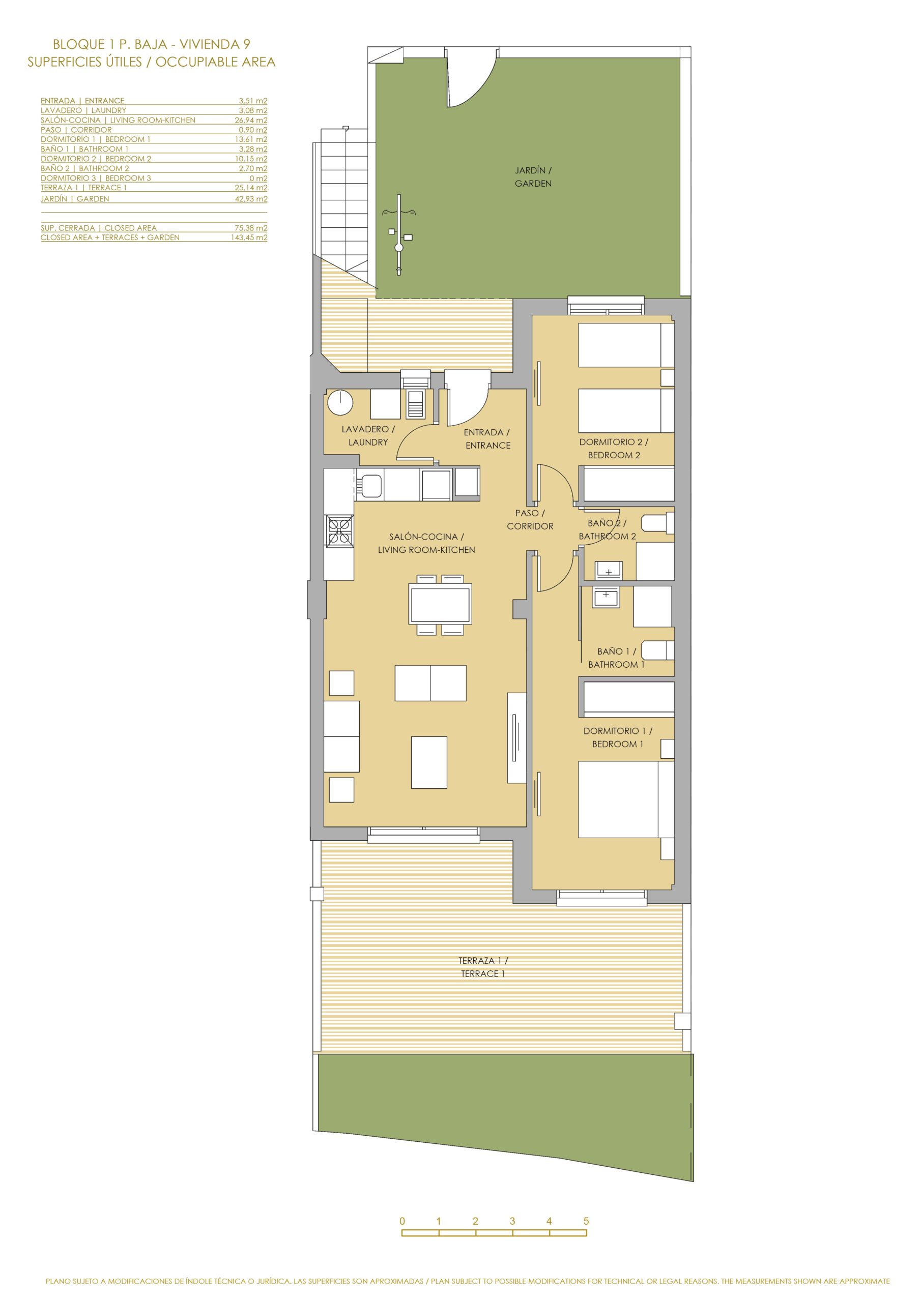 De buitenruimtes van deze woningen zijn ontworpen om optimaal te genieten van het mediterrane klimaat. Elke woning heeft een terras, ideaal om buiten te ontspannen of te genieten van maaltijden in de open lucht. Bovendien bevatten sommige typologieën een solarium, wat een extra ruimte biedt om te zonnebaden of een privé ontspanningsruimte te creëren. De tuinen, aanwezig in bepaalde configuraties, bieden een vleugje natuur en een perfecte ruimte voor buitenactiviteiten. De toevoeging van pergola’s aan de buitenruimtes voegt een element van schaduw en stijl toe, waardoor het mogelijk is om zelfs op de zonnigste dagen van buiten te genieten.