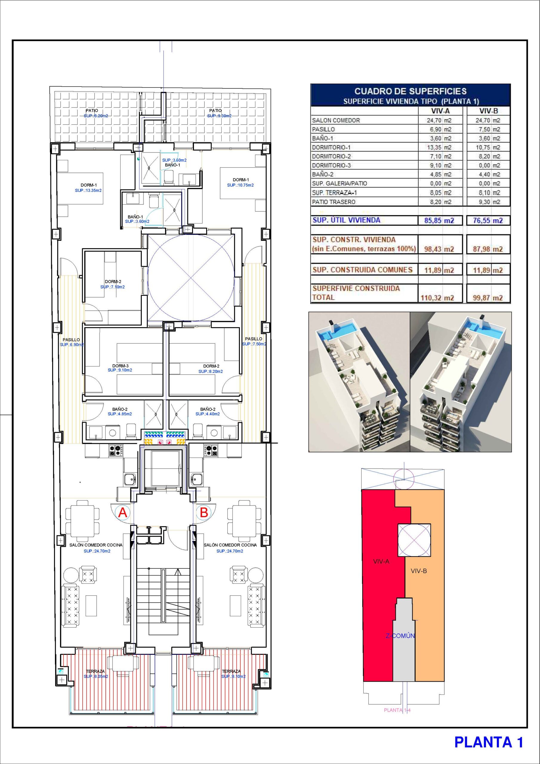 Het wooncomplex valt op door zijn moderne en elegante architectuur, ontworpen met hoogwaardige materialen en een esthetiek die functionaliteit en duurzaamheid combineert. De gebouwen zijn uitgerust met energiezuinige systemen, zoals aluminium buitenschrijnwerk met thermische onderbreking, gemotoriseerde zonwering en vooraf geïnstalleerde airconditioningsystemen. Daarnaast kunnen bewoners genieten van een gemeenschappelijk solarium op het dak met zwembad, waar ze kunnen ontspannen terwijl ze genieten van het panoramische uitzicht over de stad en de mediterrane omgeving.