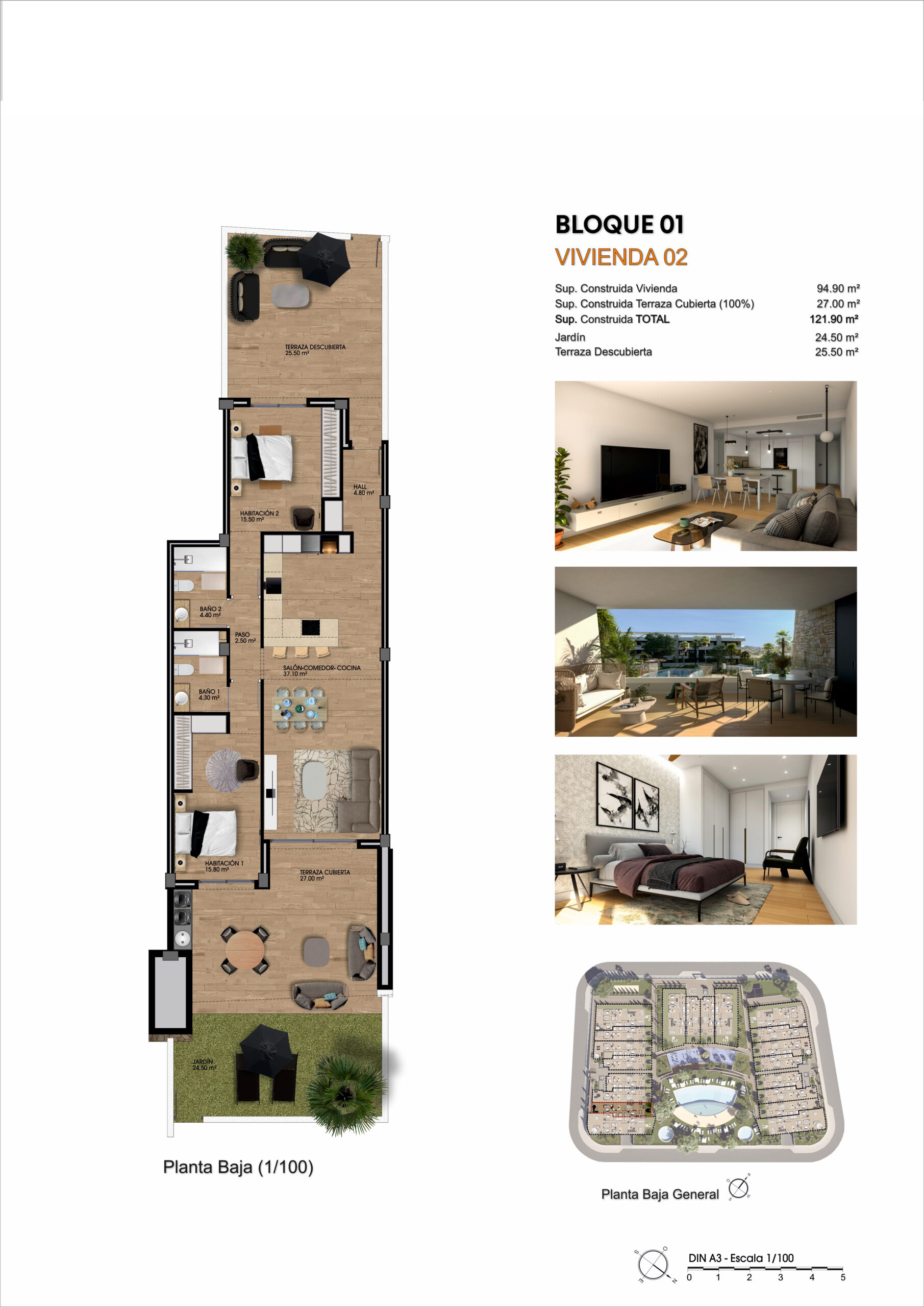 De buitenkant van dit project valt op door de harmonieuze integratie met het natuurlijke landschap van Font del Llop, omringd door groene bergen en uitzicht op de golfbaan. De terrassen en solariums op elke verdieping zorgen ervoor dat je het hele jaar door maximaal kunt genieten van de mediterrane zon. De moderne, minimalistische architectuur combineert strakke lijnen en hoogwaardige materialen, waardoor een eigentijdse en uitnodigende esthetiek ontstaat. Elke woning heeft voldoende buitenruimte, in de vorm van een privétuin of terras, en biedt zo de ideale plek om buiten te ontspannen. Het ontwerp is ontworpen om te profiteren van natuurlijk licht en biedt een panoramisch uitzicht vanuit elke eenheid.