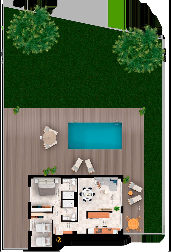 Het interieur van de woningen is ontworpen met een focus op comfort en functionaliteit. Alle eigendommen zijn volledig gemeubileerd en uitgerust met moderne apparaten. De porseleinen tegelvloeren voegen een vleugje elegantie en duurzaamheid toe. Ingebouwde kasten bieden efficiënte opslag, terwijl de airconditioning zorgt voor een aangename omgeving in elk seizoen. Met een indeling die twee slaapkamers en twee badkamers omvat, zijn deze woningen ontworpen om aan de behoeften van elk gezin te voldoen.