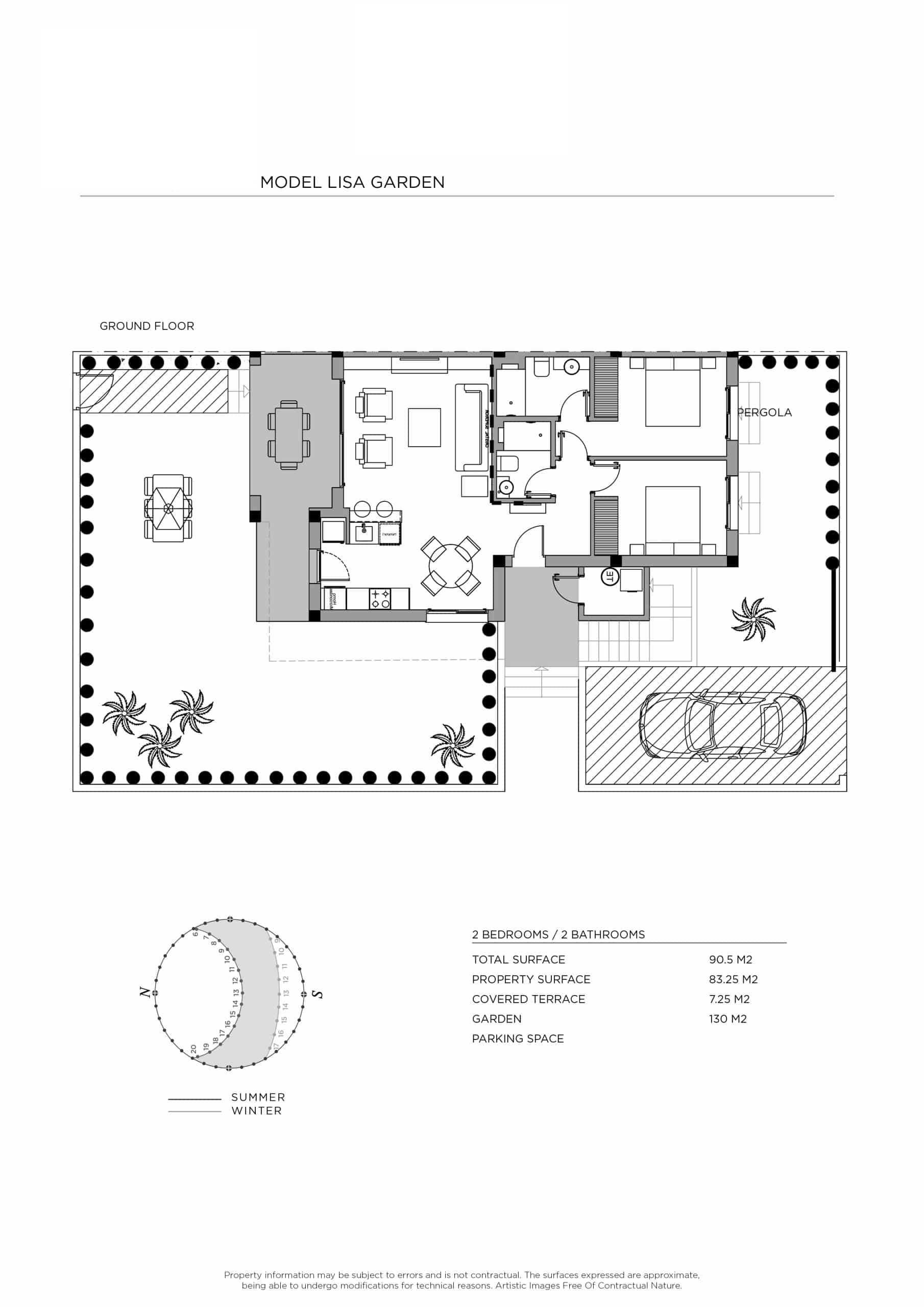 Het interieur van de woningen in dit wooncomplex is ontworpen om een moderne en comfortabele ruimte te bieden. Met bebouwde oppervlakten tot 116 m² en bruikbare oppervlakten van 100 m² hebben de bungalows, herenhuizen en halfvrijstaande villa’s 2 of 3 slaapkamers en tot 3 badkamers, allemaal met een hoogwaardige afwerking. De Amerikaanse keukens, uitgerust met moderne apparatuur, zijn perfect geïntegreerd met de woonkamer, waardoor een open en lichte ruimte ontstaat. Ingebouwde kasten in de slaapkamers bieden voldoende opbergruimte, terwijl grote ramen veel natuurlijk licht binnenlaten, wat het gevoel van ruimtelijkheid en verbondenheid met het buitenleven versterkt. Solariums en terrassen bieden extra ruimte om van het buitenleven te genieten.