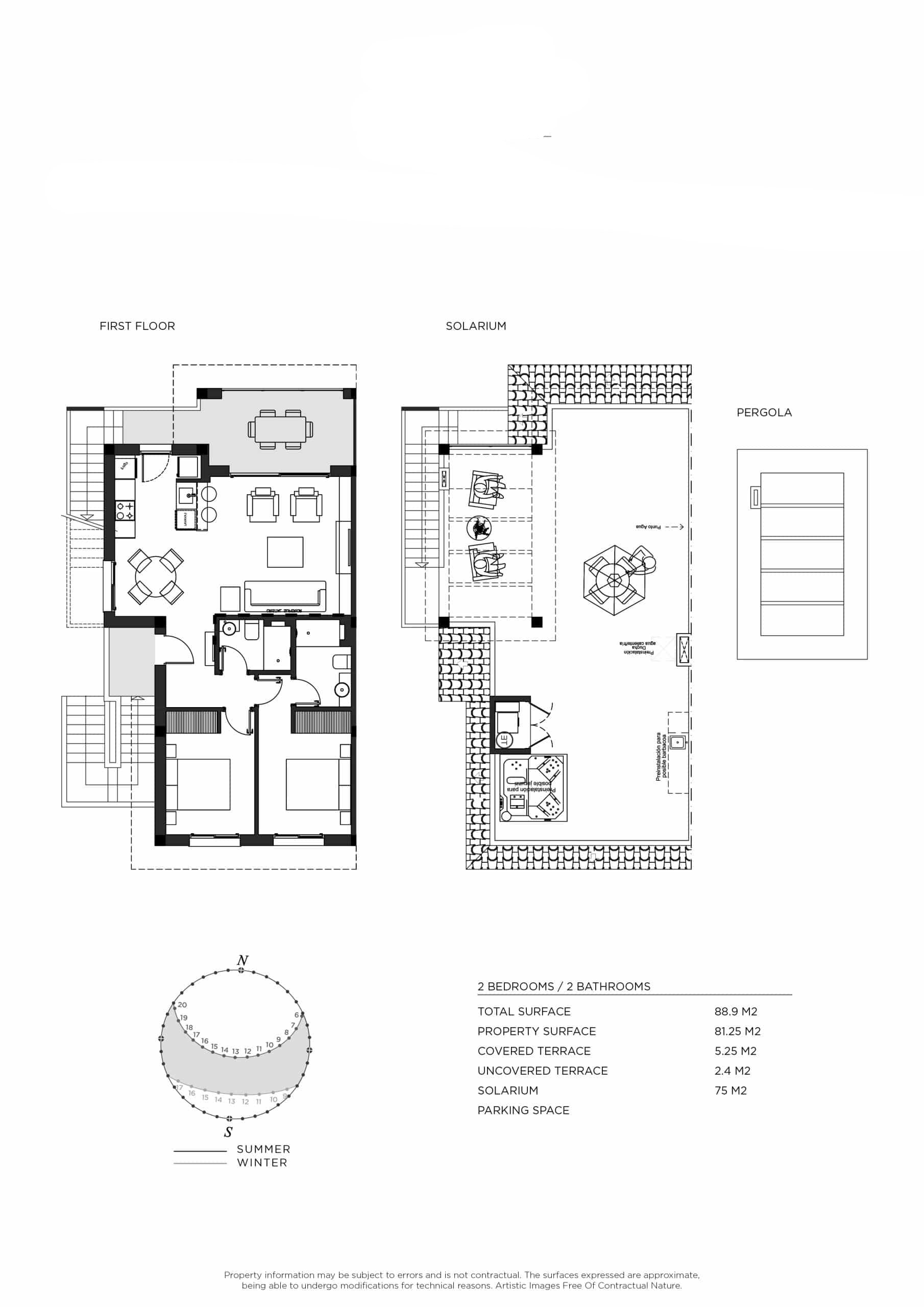 De buitenruimtes van deze woningen zijn ontworpen om een ruimte te bieden voor ontspanning en buitenplezier. Elke bungalow heeft een privétuin, perfect om te genieten van het mediterrane klimaat. Daarnaast bieden terrassen en solariums extra ruimte voor recreatie, waardoor bewoners kunnen genieten van een vrij uitzicht en rustige momenten. De aanwezigheid van pergola’s voegt een vleugje elegantie en functionaliteit toe, door schaduw en stijl te bieden aan de buitenruimtes.