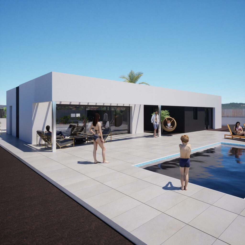 De moderne woning biedt een indrukwekkende buitenruimte met een zwembad en een ruime woonkamer met uitzicht op het terras bij het zwembad. Een royale pergola biedt schaduw en buitencomfort, met ruimte voor een hangende hangmat of bubbelstoel. Het grote perceel biedt de mogelijkheid om een kelder of kelder/garage te bouwen. Gelegen in een ontwikkelingswijk met luxe woningen, is het huis goed verbonden met het stedelijke centrum van Alfaz del Pi, El Albir en snelweg 332 naar Altea of Benidorm. Binnen scheidt een hal met een groot raam met uitzicht op de buitentuin het publieke gedeelte van het privégedeelte, terwijl de woonkamer met kitchenette en de berging/wasruimte functionaliteit en comfort bieden.