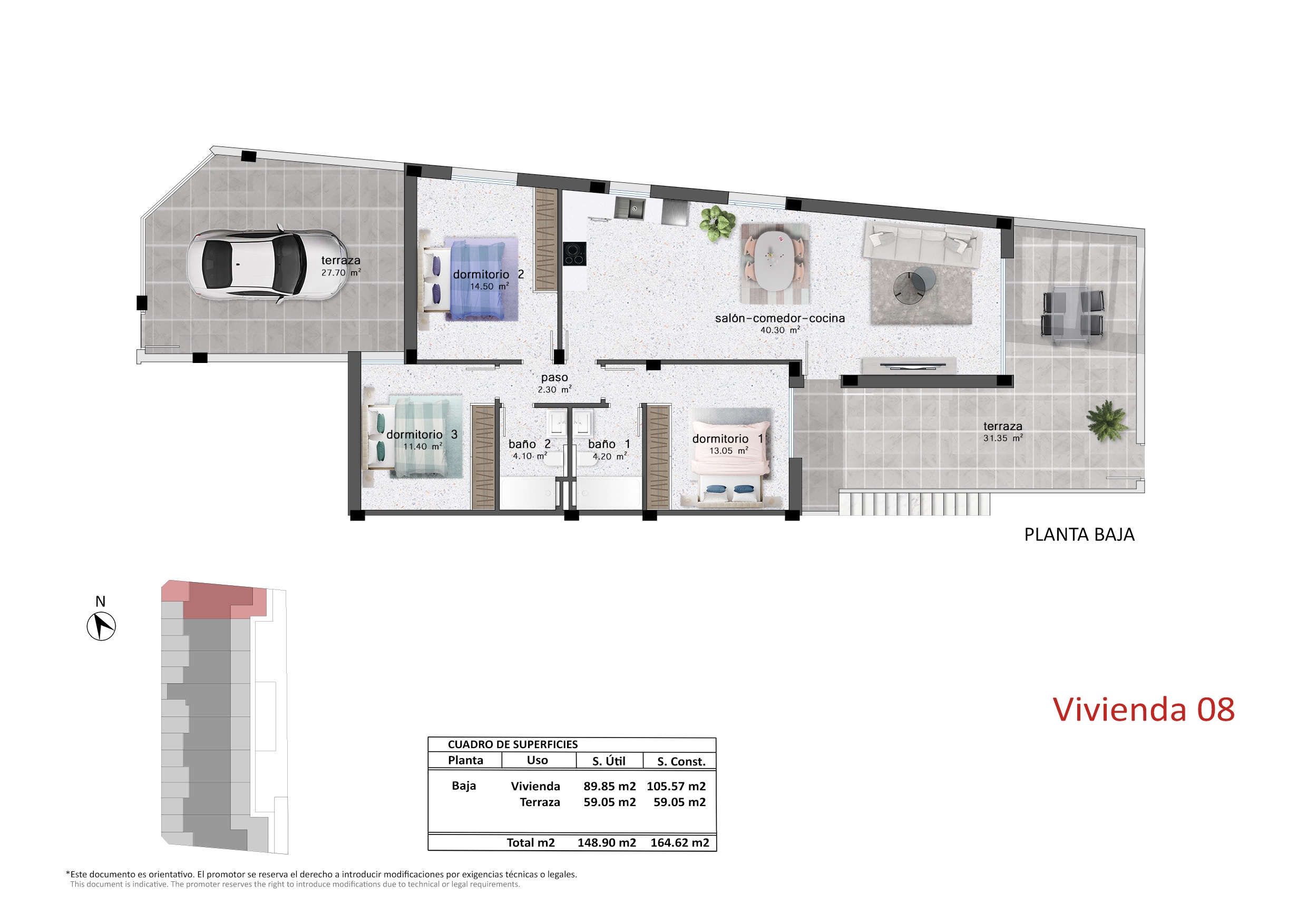 Elke woning is ontworpen om functionaliteit en stijl te bieden, met materialen van topkwaliteit om duurzaamheid en comfort te garanderen. De appartementen op de begane grond hebben 2 slaapkamers en een omsloten terras, terwijl de appartementen op de bovenste verdieping 3 slaapkamers hebben en exclusieve toegang tot het solarium. De geoptimaliseerde verdeling van de ruimtes, samen met moderne details en hoogwaardige afwerking, garandeert een comfortabele en gastvrije woonervaring. Bovendien verbindt een lift de verschillende verdiepingen, waardoor toegang tot alle niveaus mogelijk is.