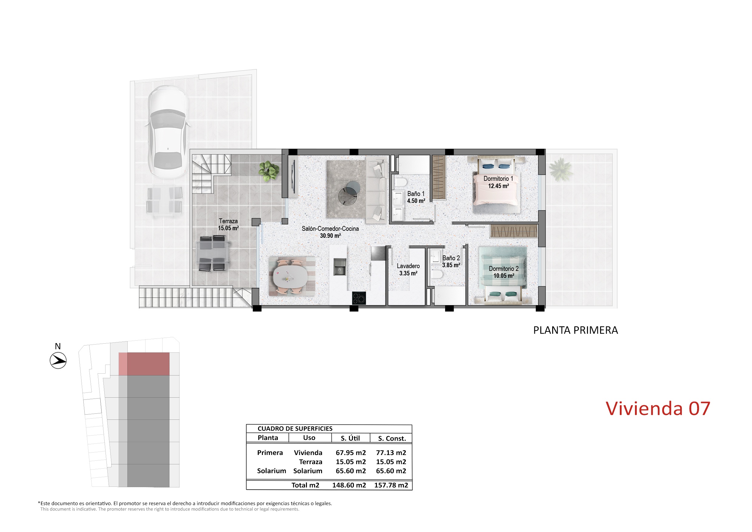 Het complex heeft een moderne inrichting en een gemeenschappelijke tuin met zwembad. Elke flat heeft ruime terrassen waar je het hele jaar door van de zon kunt genieten. Bovendien hebben de appartementen op de bovenste verdieping ruimte voor 2 fietsen in de gemeenschappelijke ruimte, die hiervoor een speciale ruimte heeft. Het solarium van de bovenwoningen heeft een afgesloten zomerkeuken, toilet, pergola, kunstgras, verlichting en standaard douche, allemaal ontworpen om optimaal gebruik te maken van de buitenruimte.