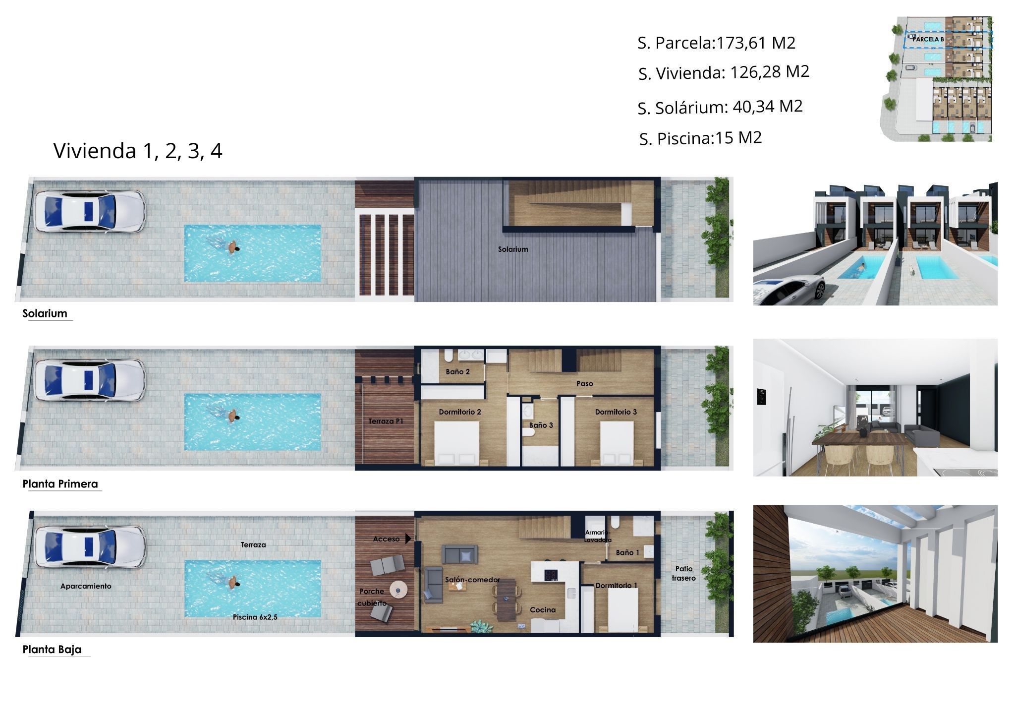 Gelegen in de charmante omgeving van Pilar de la Horadada, bieden deze twee-onder-een-kapwoningen een perfecte combinatie van comfort en functionaliteit. Met in totaal 9 beschikbare woningen kunnen toekomstige bewoners kiezen uit woningen met 2 of 3 slaapkamers en 2 of 3 badkamers, aangepast aan verschillende gezinsbehoeften. De locatie is ideaal, op slechts 2 km van de zee, waardoor men kan genieten van de zeebries en een ontspannen levensstijl. Bovendien ligt de luchthaven op 40 km afstand, wat toegang tot internationale verbindingen vergemakkelijkt. Deze woningen zijn ontworpen om een moderne en comfortabele levenservaring te bieden, met kenmerken die het welzijn van hun bewoners waarborgen.