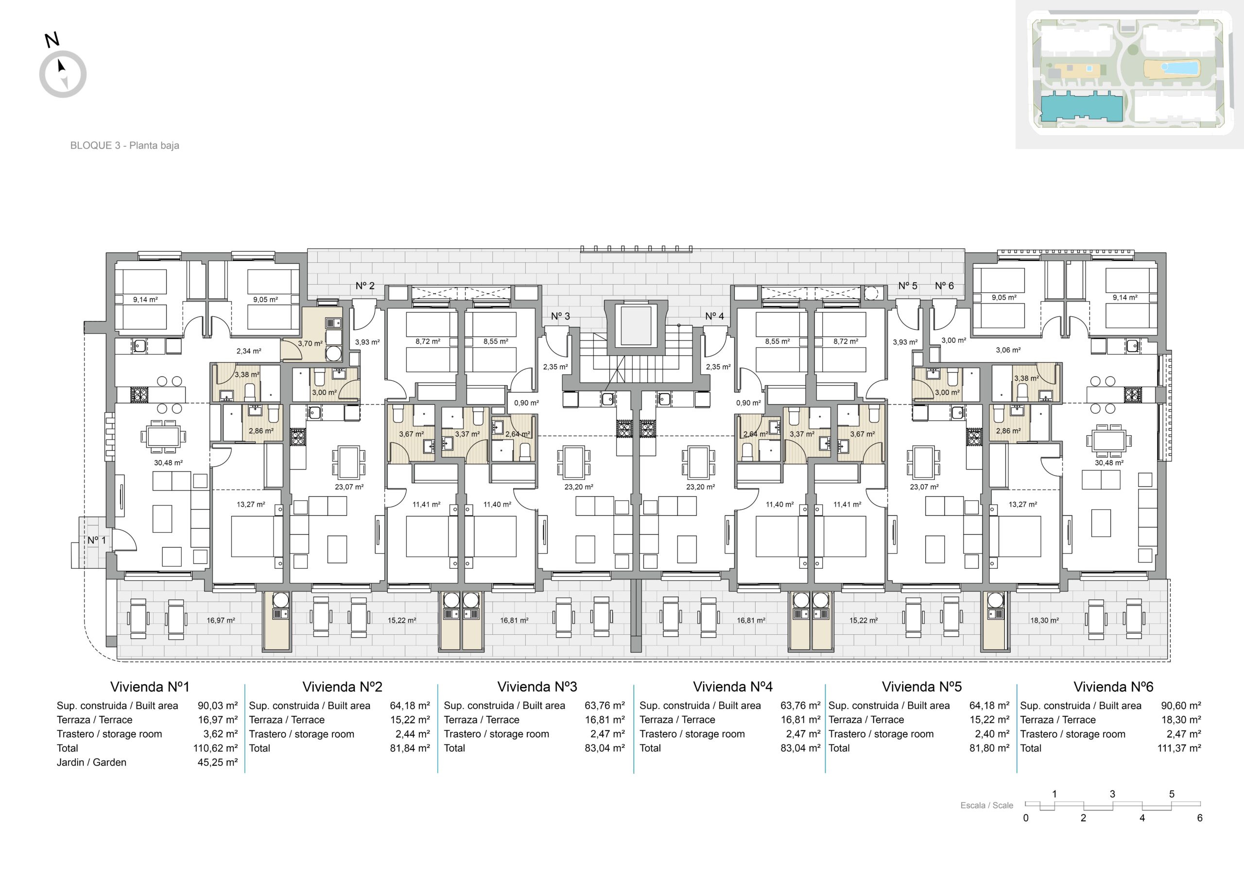 Het interieur van de woningen is zorgvuldig ontworpen om een gezellige en functionele ruimte te bieden. De indelingsopties omvatten woningen met 2 en 3 slaapkamers, allemaal met 2 badkamers, wat flexibiliteit biedt voor gezinnen van verschillende groottes. Keramische vloeren geven een moderne uitstraling en zijn gemakkelijk te onderhouden. De toevoeging van een privéjacuzzi in sommige woningen voegt een element van luxe en ontspanning toe. Bovendien zorgt de pre-installatie van airconditioning ervoor dat de woningen het hele jaar door een aangename temperatuur behouden.