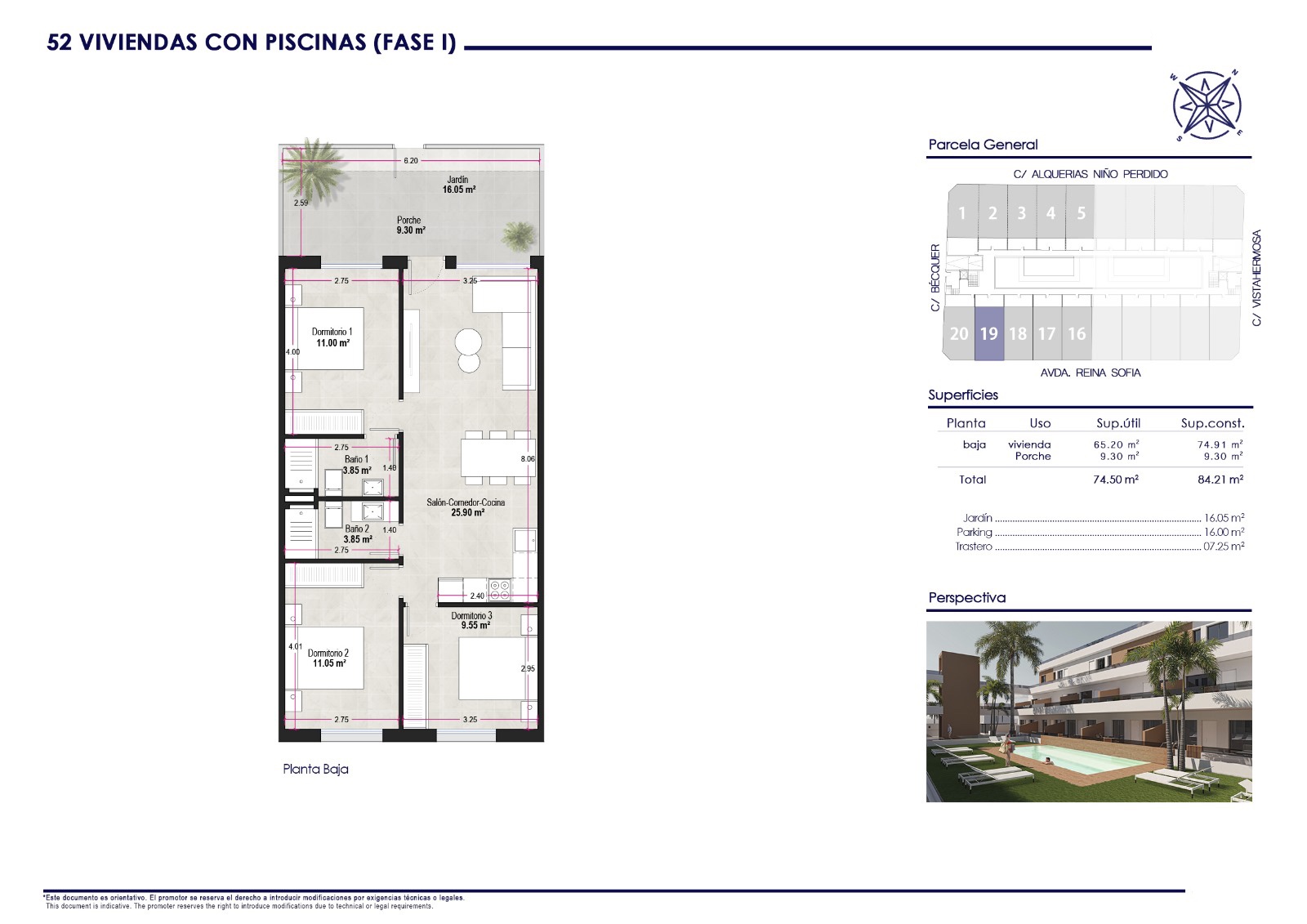 Pilar de la Horadada is een kustplaats met een ruim aanbod aan diensten en activiteiten. De grote hoofdstraat van de stad heeft supermarkten, veel winkels, restaurants, bars en gezellige pleintjes. De prachtige stranden van Torre de la Horadada en Mil Palmeras, met hun fijne zandpromenades, liggen op slechts 5 minuten afstand. Het project is goed verbonden met de luchthavens van Corvera (Murcia) en Alicante, op respectievelijk 40 en 55 minuten afstand. De nabijheid van scholen, winkelcentra, ziekenhuizen en openbaar vervoer zorgt ervoor dat alle dagelijkse behoeften binnen handbereik zijn. Het gemeenschappelijke zwembad en de tuinen van het complex bieden een groene en ontspannen omgeving voor alle bewoners.
