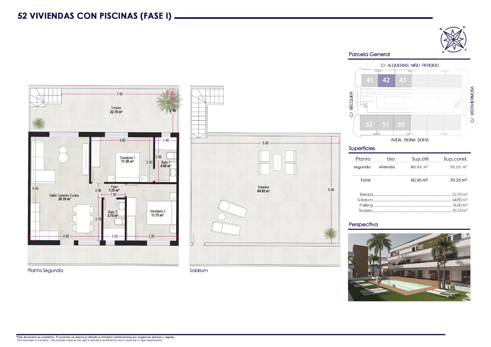 Pilar de la Horadada is een kustplaats met een ruim aanbod aan diensten en activiteiten. De grote hoofdstraat van de stad heeft supermarkten, veel winkels, restaurants, bars en gezellige pleintjes. De prachtige stranden van Torre de la Horadada en Mil Palmeras, met hun fijne zandpromenades, liggen op slechts 5 minuten afstand. Het project is goed verbonden met de luchthavens van Corvera (Murcia) en Alicante, op respectievelijk 40 en 55 minuten afstand. De nabijheid van scholen, winkelcentra, ziekenhuizen en openbaar vervoer zorgt ervoor dat alle dagelijkse behoeften binnen handbereik zijn. Het gemeenschappelijke zwembad en de tuinen van het complex bieden een groene en ontspannen omgeving voor alle bewoners.