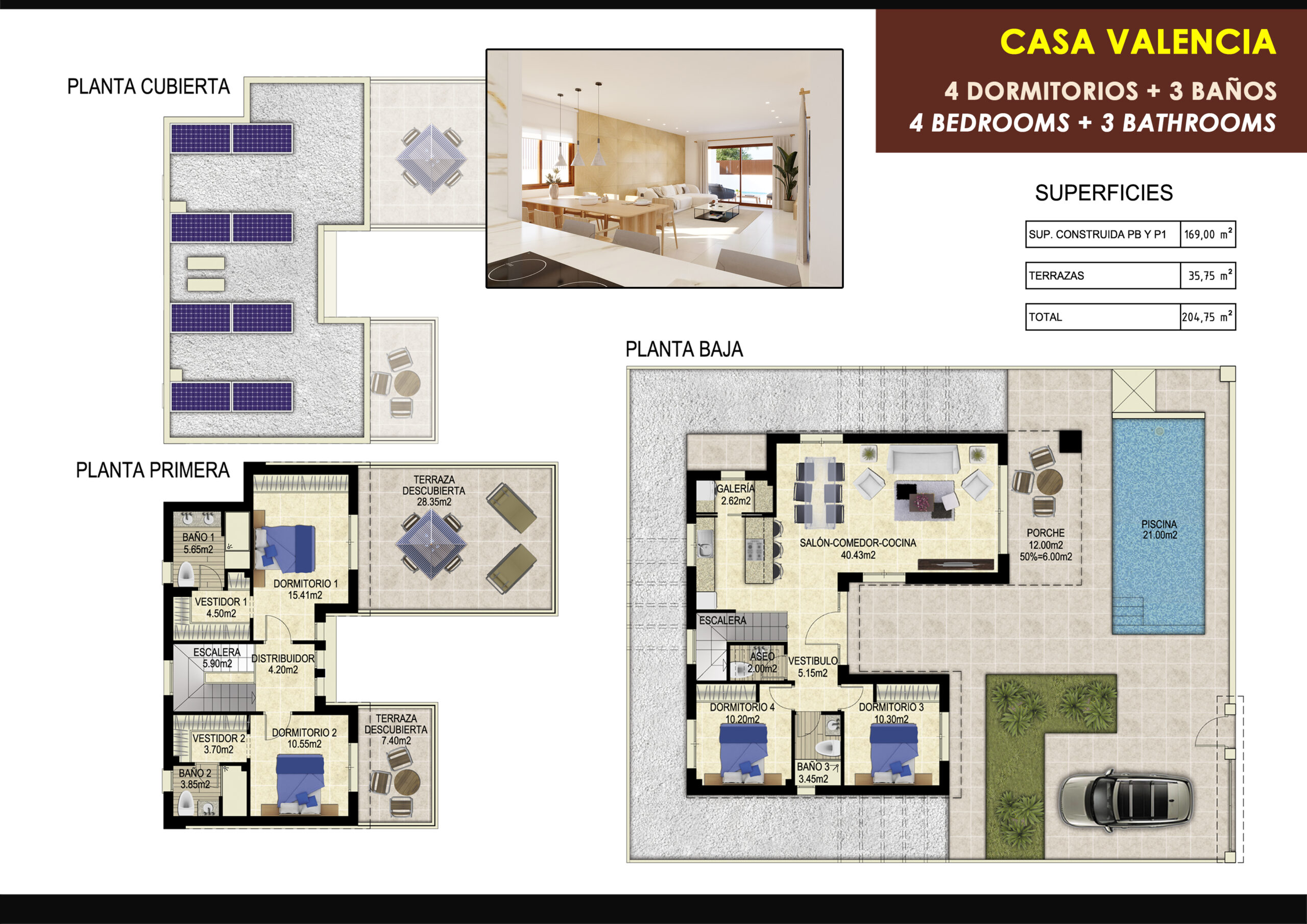 Hedendaagse architectuur: Moderne gevels met elegante lijnen, hoogwaardige materialen en een harmonieuze integratie met het mediterrane landschap. Huisvestingsmogelijkheden: Geschakelde villa’s met 2 slaapkamers en 2 badkamers, privézwembad en optie solarium. Herenhuizen met 3 slaapkamers en 3 badkamers, met meerdere terrassen, solarium en gemeenschappelijk zwembad. Vrijstaande villa’s met 4 slaapkamers en 3 badkamers, met grote percelen van meer dan 300m², privézwembad en tuin. Energie-efficiëntie: Installatie van fotovoltaïsche zonnepanelen in alle huizen.