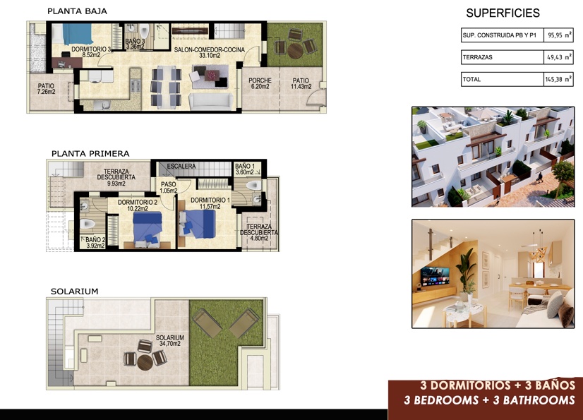 Gelegen in het prachtige gebied van Orihuela Costa, biedt dit wooncomplex 13 twee-onder-een-kapwoningen ontworpen voor degenen die comfort en functionaliteit zoeken. Elke woning is ontworpen om ruimte en comfort te maximaliseren, met een indeling die drie slaapkamers en drie badkamers omvat. De locatie is ideaal voor golfliefhebbers, aangezien het slechts 1 km van een golfbaan ligt, waardoor het mogelijk is om van deze sport te genieten in een bevoorrechte omgeving.